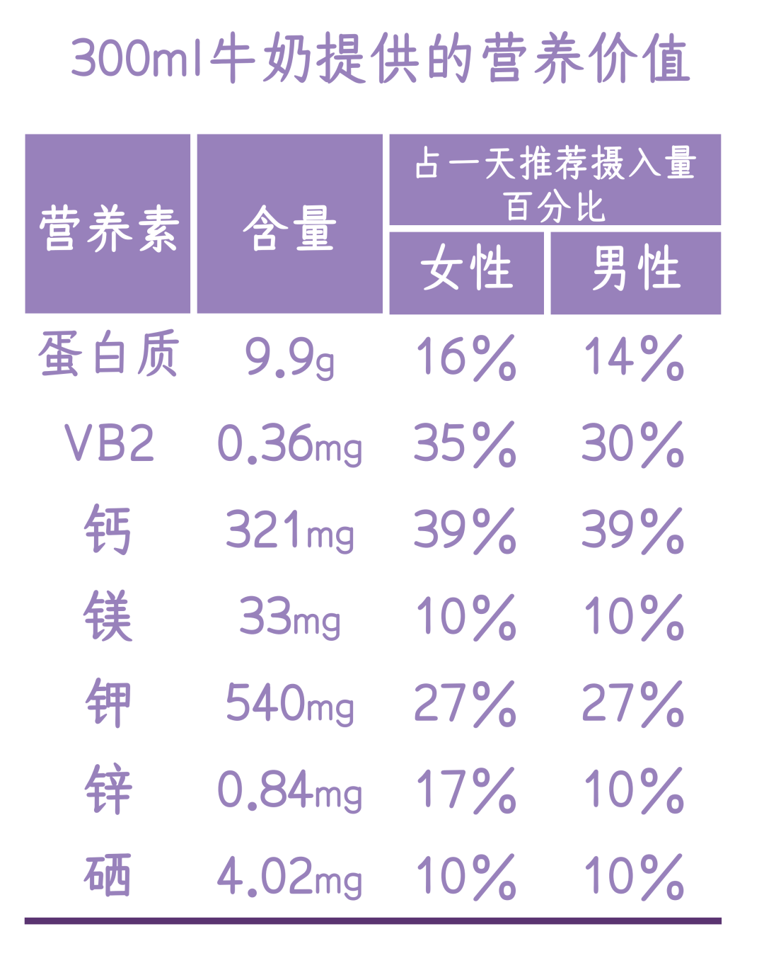 购买牛奶时建议仔细查看营养成分表,牛奶的蛋白质含量通常为2.8%~3.6%。
