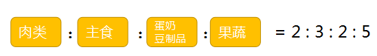 一日之中,我们需要摄入的肉蛋主食比例如下,通俗地来讲就是2拳肉类、3拳主食、2拳蛋奶制品、5拳果蔬