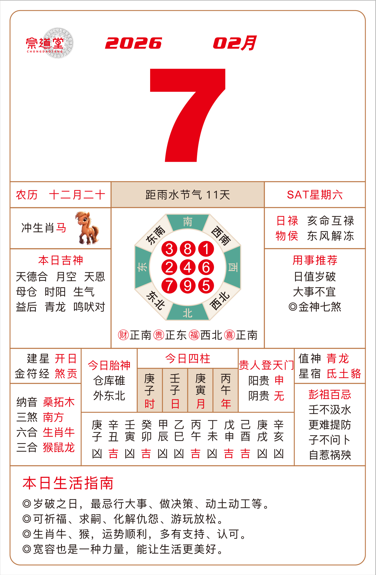 2026年2月23日 农历正月初七 戊辰日 冲狗