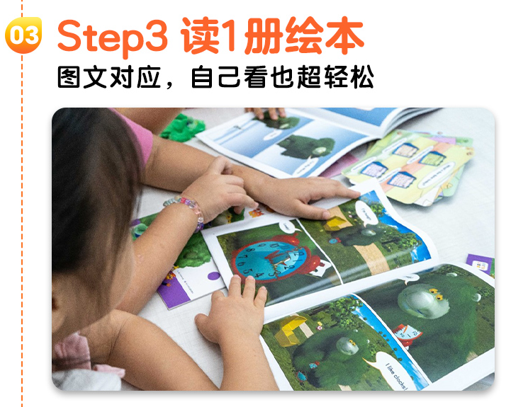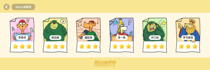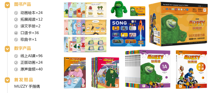 接下来,让我们具体看看MUZZY大橙盒是怎样将看、读、听、说、练、玩,深度融合在一起,有步骤有方法地带孩子学习英语。