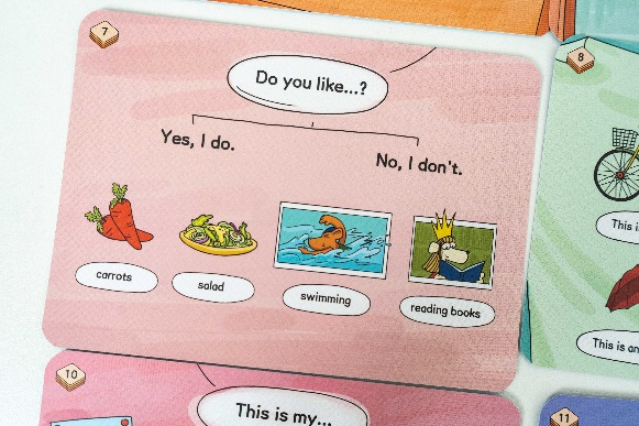 在看完动画后和孩子一起阅读配套绘本,一起做做练习,巩固反复出现的一些重要的短语和句子,强化孩子的记忆。