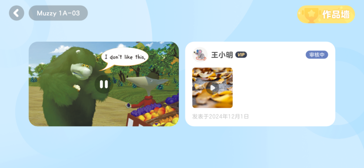 与动画角色直接对话,运用所学,与人物对话,营造真实语言运用场景。这也是小朋友最喜欢的环节,可以直接录视频来回答动画人物的问题,特别有成就感。