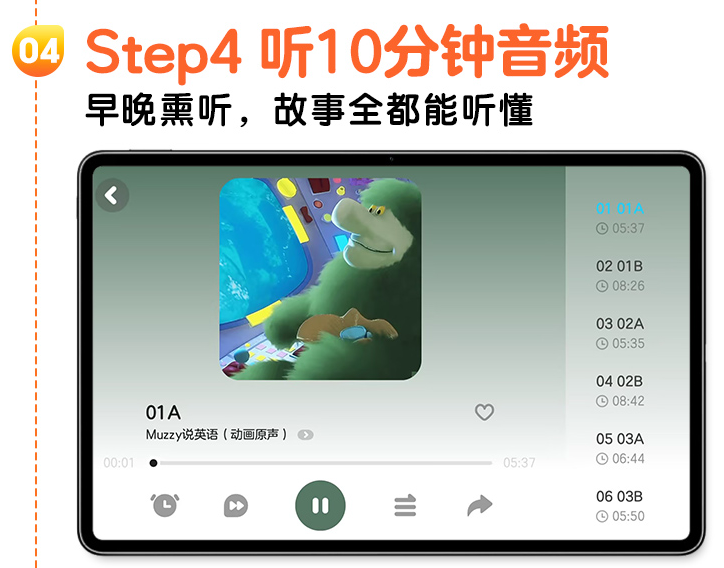 在起床、吃饭、上学路上、睡前听都可以,关键是习惯这个语感和语言环境,起到巩固效果。同时也能够减少画面对语言的干扰,强化孩子对动画中英文对话的印象,对锻炼孩子的听力非常有好处。