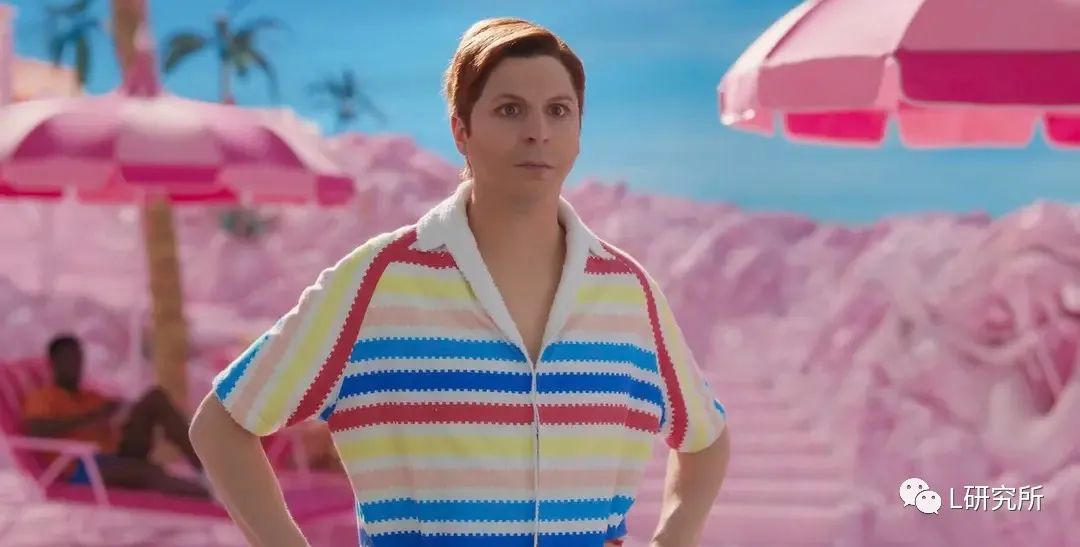 第二个是无法适应传统男性角色的“艾伦”,他不管是在芭比统治还是在肯统治,都不太能找到自己的位置,跟现实中边缘人群的定位很像。