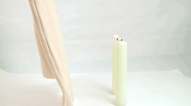 把风扇开到最大,只要德绒背心不被移开,烛火就纹丝不动~
