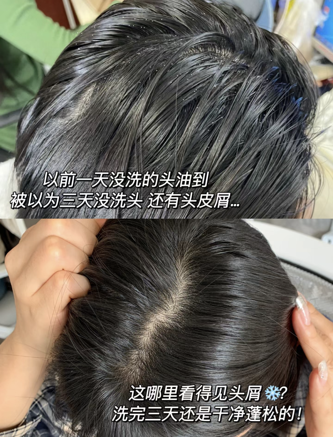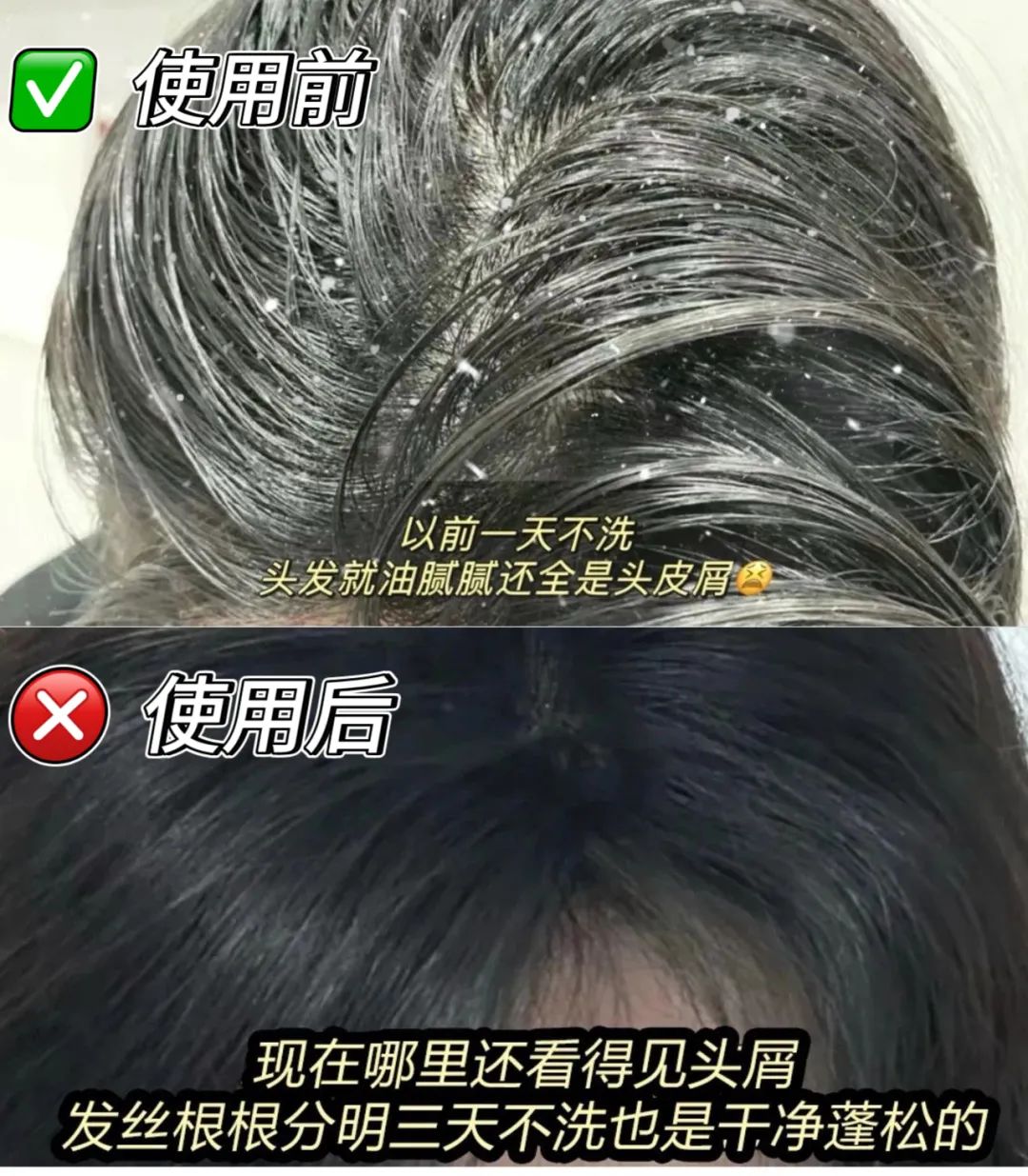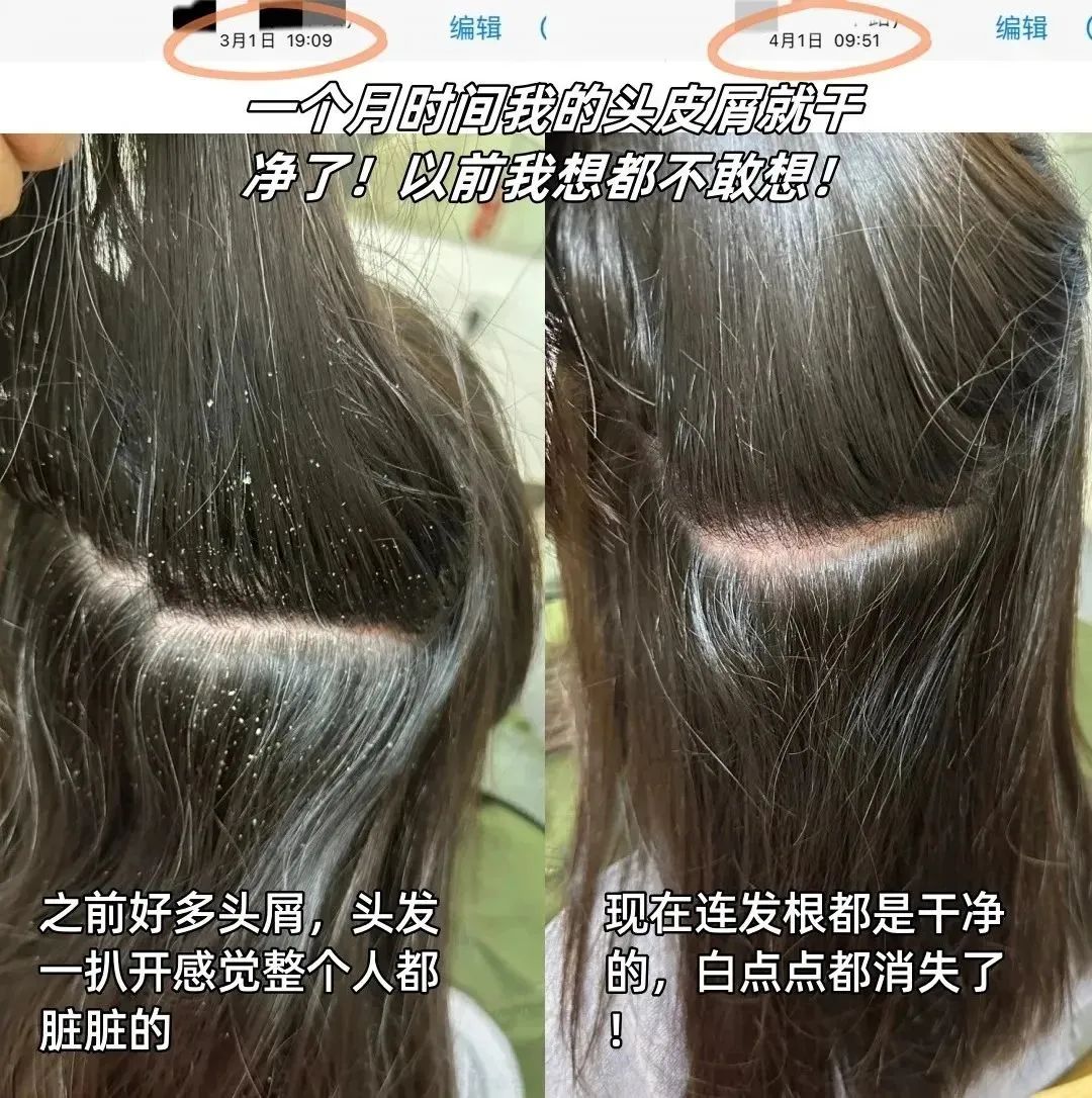 用了一个月,抓头发时指甲缝里干干净净,穿黑T恤再也不用频繁拍肩,开会时放心捋头发,不用怕 “雪花纷飞”。