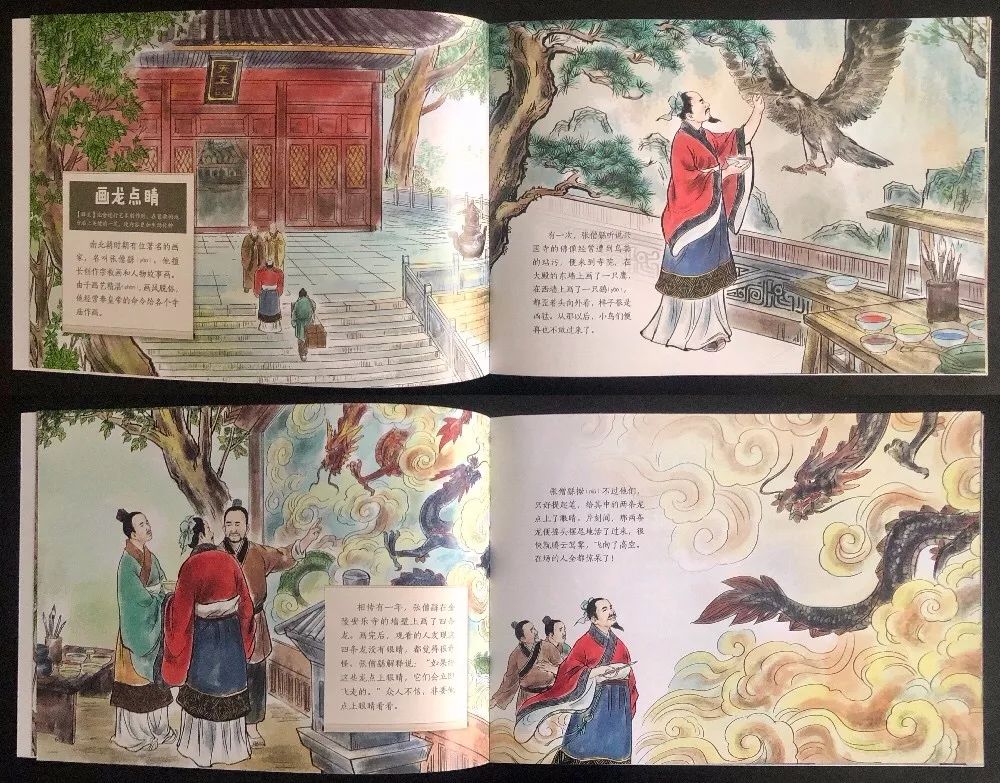 如「画龙点睛」中跃然纸上的老鹰和苍龙,让孩子印象深刻,更容易理解和记忆: