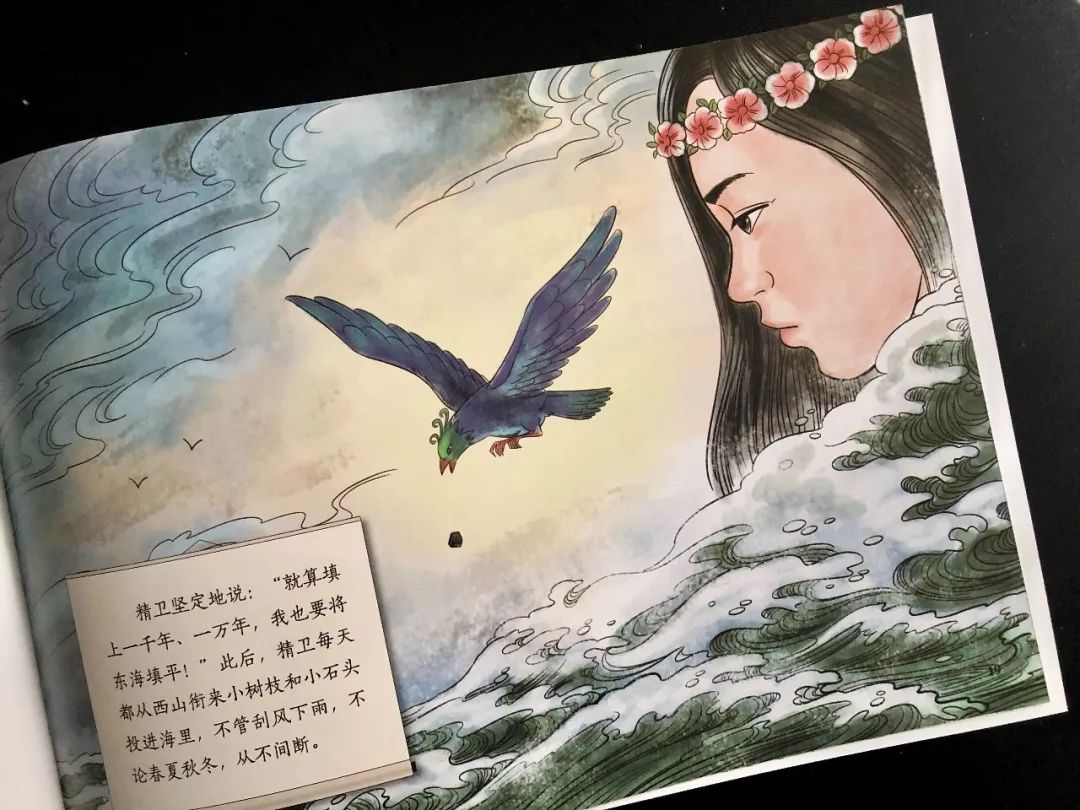 还有「精卫填海」中精卫化作鸟雀的模样,让孩子对精卫的牺牲精神有了更直观的理解。
