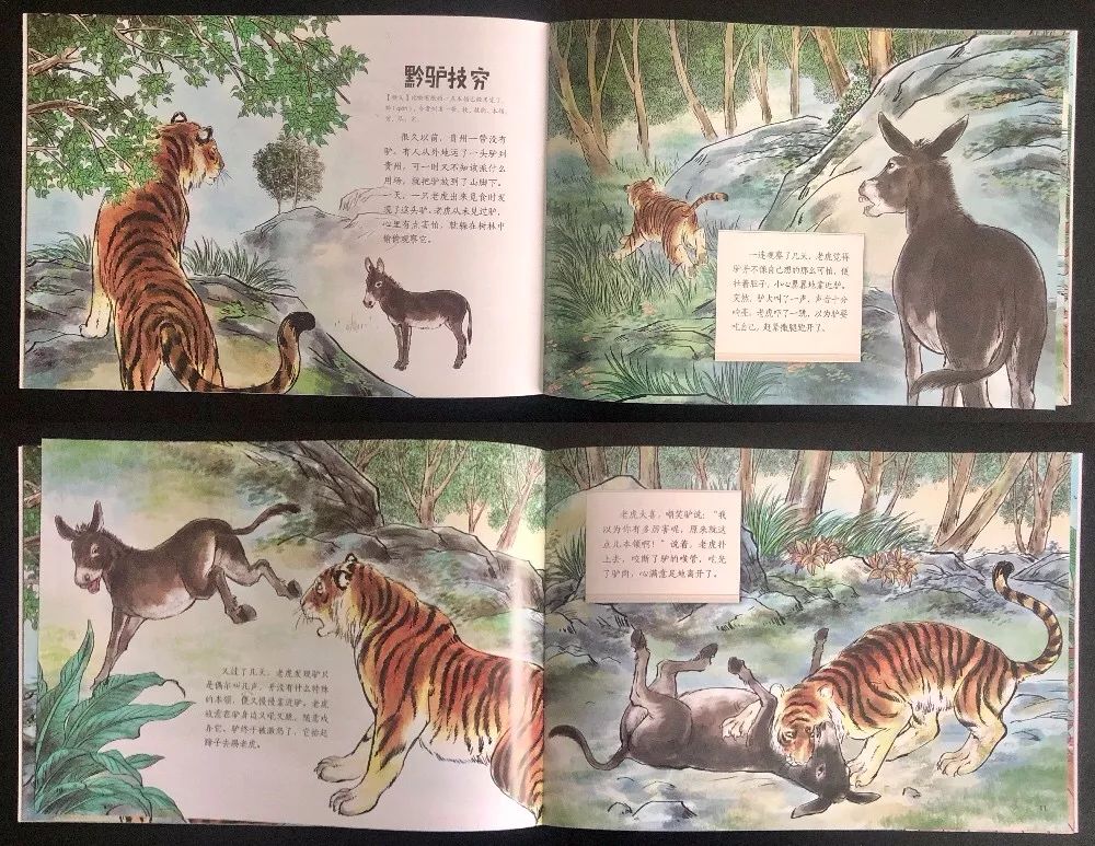 也有与动物相关的寓言故事,如:「胆小如鼠」、「黔驴技穷」、「狼狈为奸」、「管中窥豹」、「狐假虎威」等;