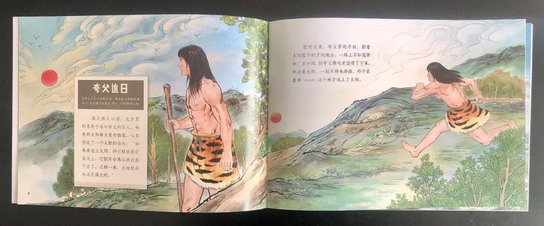 如「夸父追日」中夸父穿着虎皮裙,身材健壮的形象: