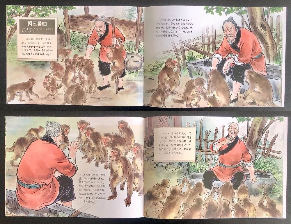 哈哈,这次成语用得太精准了。的确,这套成语绘本的插图无论是人物形象,还是背景陈设,都有满满古风感,让孩子一看就能被吸引住。