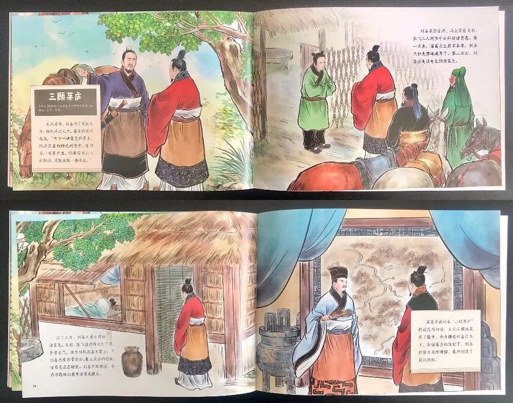 从整体构图、人物细节、背景勾勒都给孩子描绘出一幅幅古朴写实的中国风,整套书一共800张全彩的大幅插图,让孩子赏心悦目,应接不暇。
