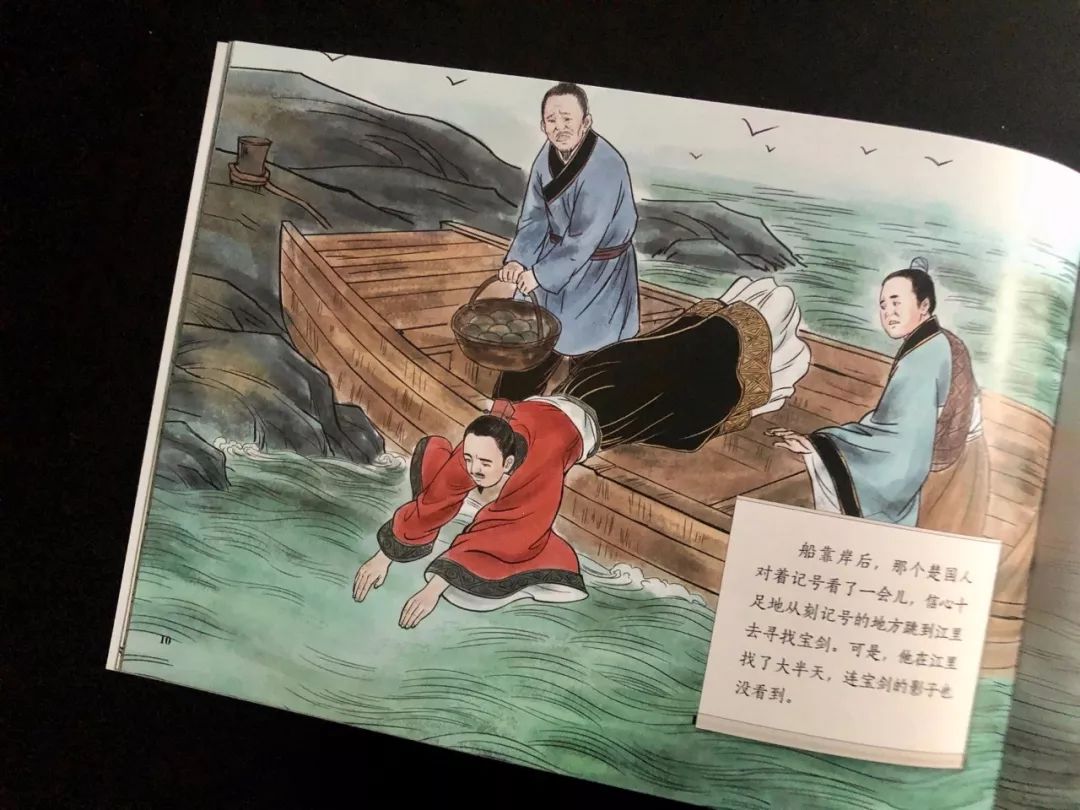 还有成语「刻舟求剑」中,将楚国人跳入江水中寻剑的模样刻画得入木三分,萌萌看到这,都不自觉捂住眼睛。