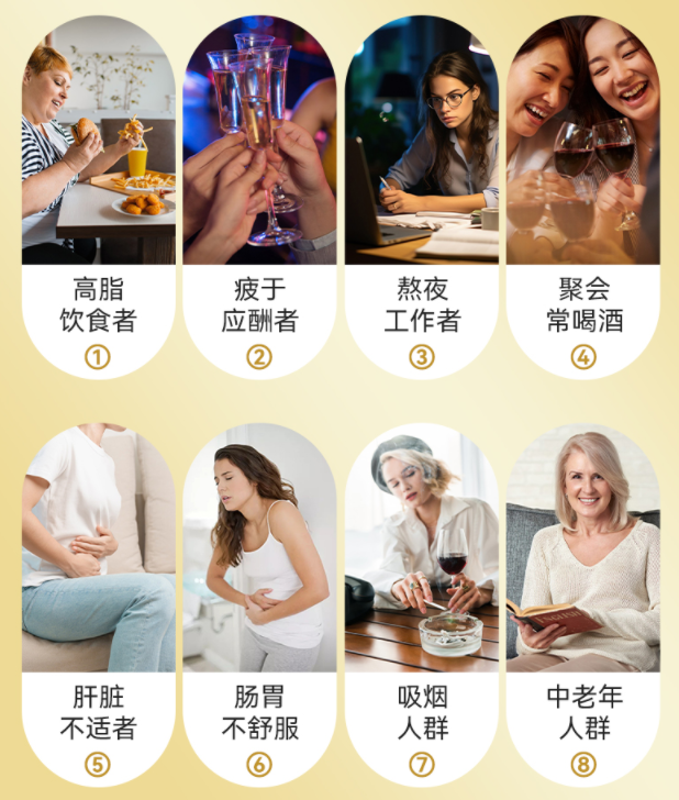 ①熬夜多、压力大、经常高油高脂饮食的打工人