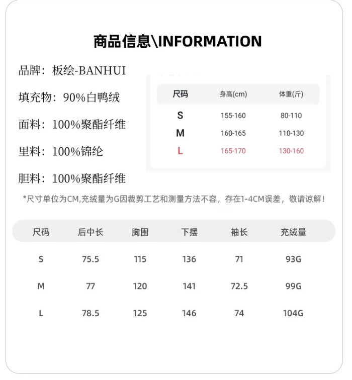 内含:90%白鸭绒填充秋冬里最深的温暖!