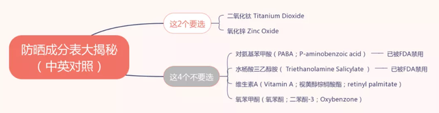 1. 对于防晒需求较低、年龄较小的孩子来说,首选物理防晒霜——成分有且仅有二氧化钛 、氧化锌;避免选择含有氧苯甲酮、维生素A(视黄醇棕榈酸酯)、氨基苯甲酸、水杨酸三乙醇胺的防晒产品。