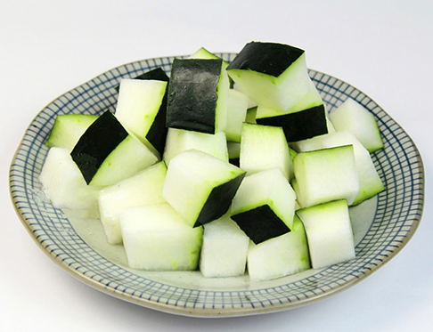 2、冬瓜清洗干净,去瓤去籽,然后切成厚片或者切成块;