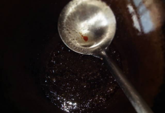 2、香菇取出沥油,锅中留适量油,葱姜蒜爆香,放2勺蚝油、1勺料酒、半勺生抽、1/3勺白糖、1/5小碗水、老抽调色;