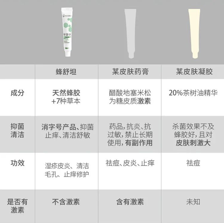纯净蜂胶+植物草本成分,无ji素,温和不刺激。坚持抹它几天,皮肤发痒、红疹会慢慢消失。