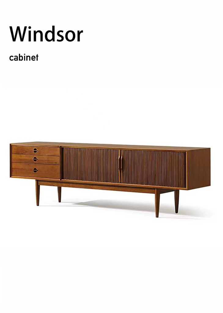 Windsor中古风电视柜一眼就能感受到高级质感与复古韵味扑面而来。甄选温暖的黄杨木实木,自然纹理清晰细腻,赋予时光的流转魅力。柜子多种功能分区设计,实现了收纳与展示的巧妙平衡。独特的卷帘门设计,有效地隐藏收纳空间,让整个柜面看起来更加整洁。柜子每个细节都经过精心处理,质感十足,怎么搭配都好看。