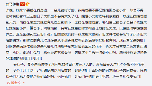 想起之前,马伊琍在微博发长文分享自己在育儿上踏进的大坑,引发广大妈妈的共鸣。