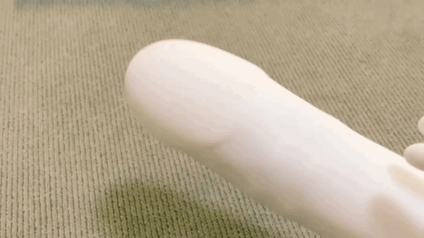 所以虽然它也是仿真设计,震动棒的头是模仿龟头的样子,但丝毫让人感觉不到低俗se情。整体手感特别光滑,小头是兔头设计,两个兔耳在震动的时候可以给豆豆非常特别的刺激感。