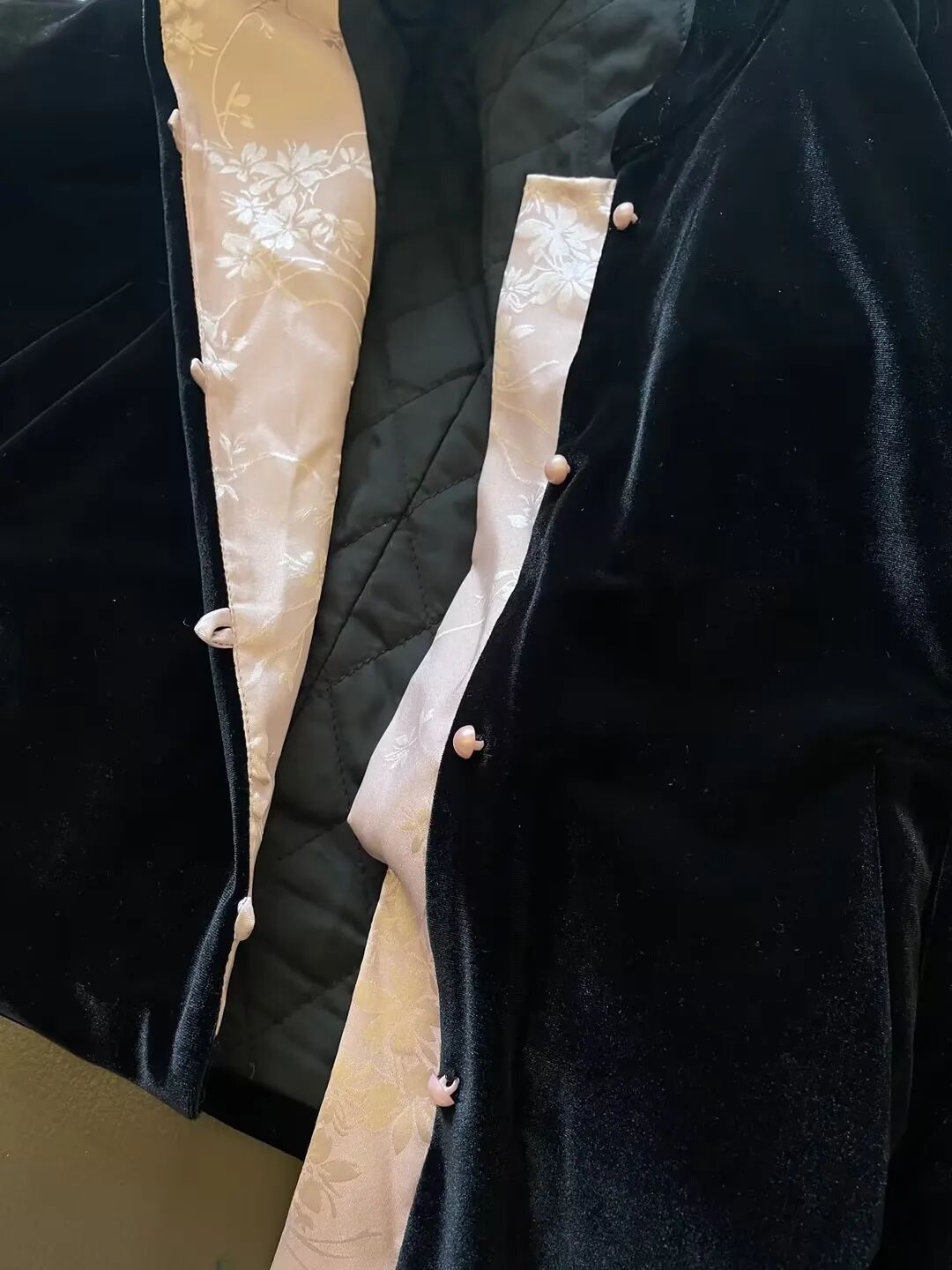 细节处,袖子还是很中式元素的提花料子。