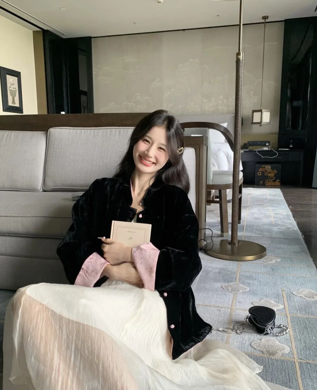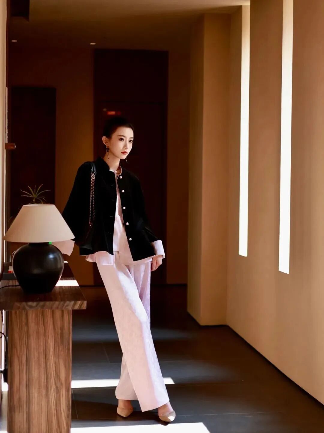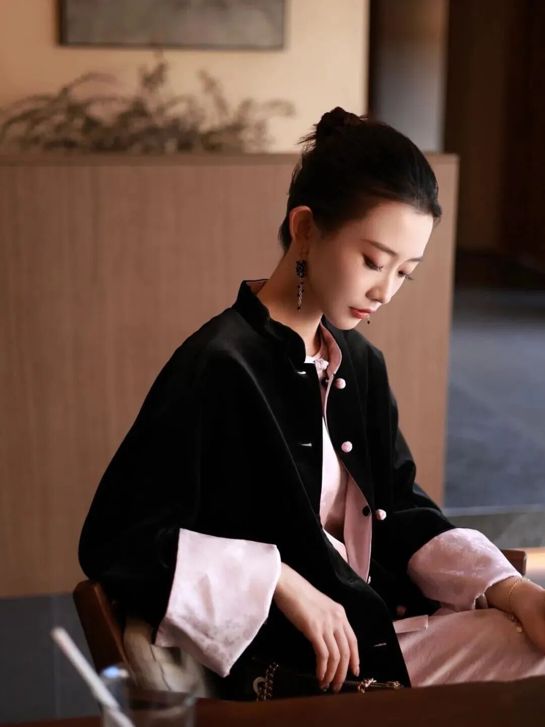 羊羔绒面没有多余的纹样装饰,只靠面料本身的质感和高级色调取胜,刚好与新中式奶白面的精致形成互补。