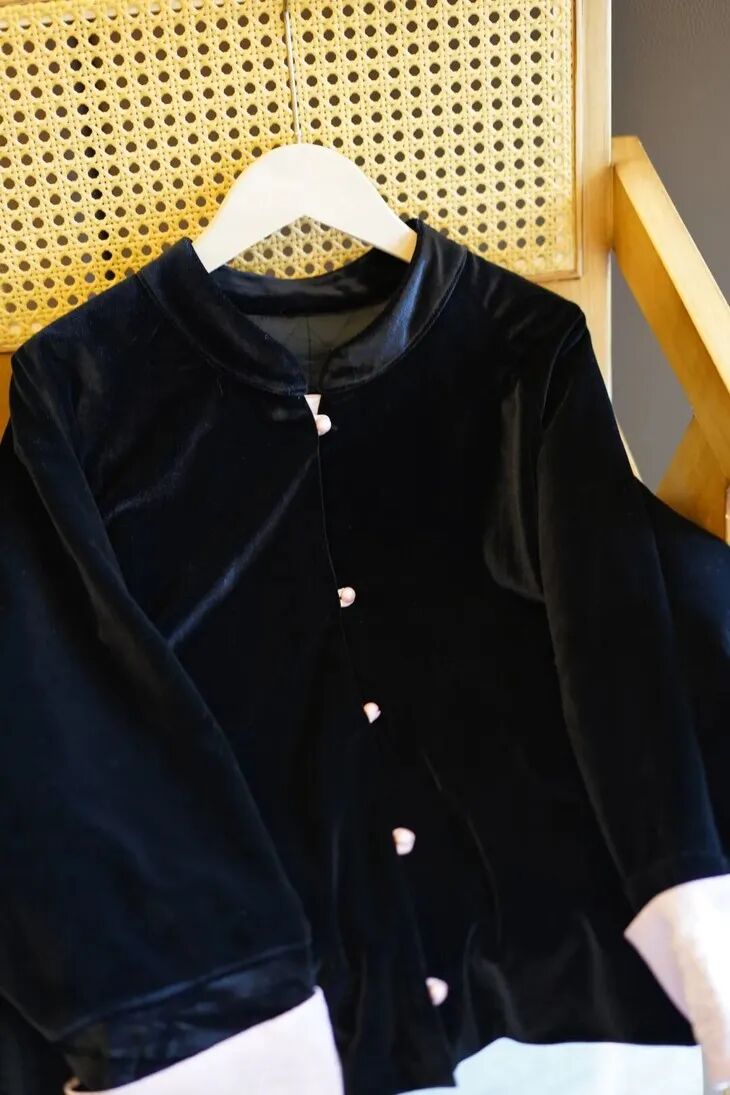 这件衣服的贵气,首先来自于它尽显奢华高贵的冬季限定黑丝绒面料。