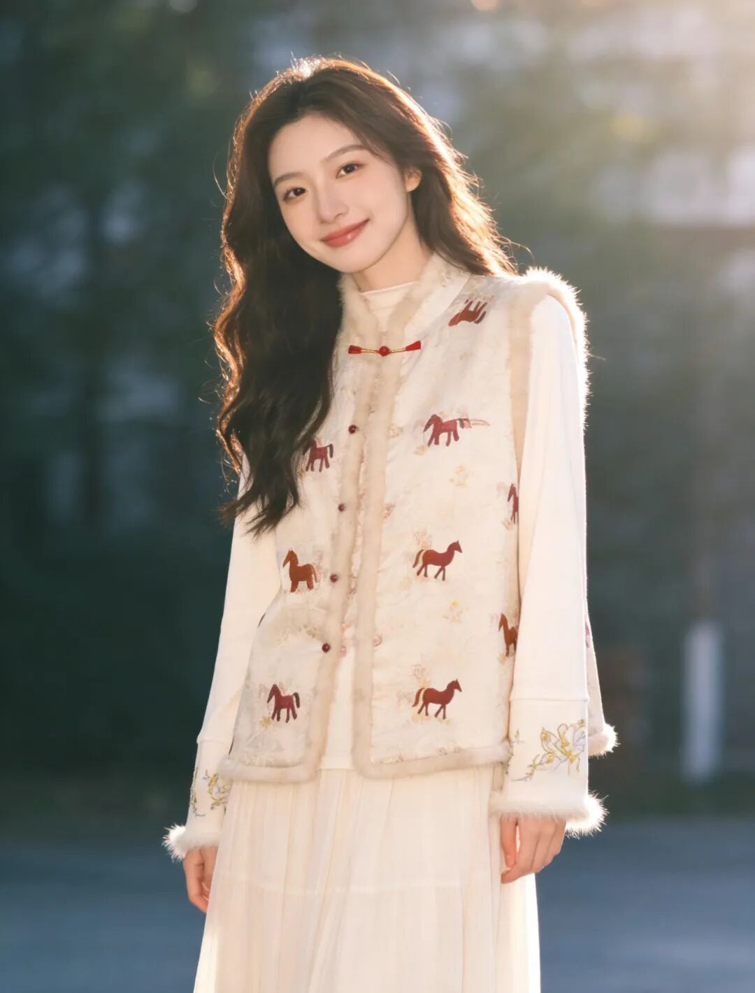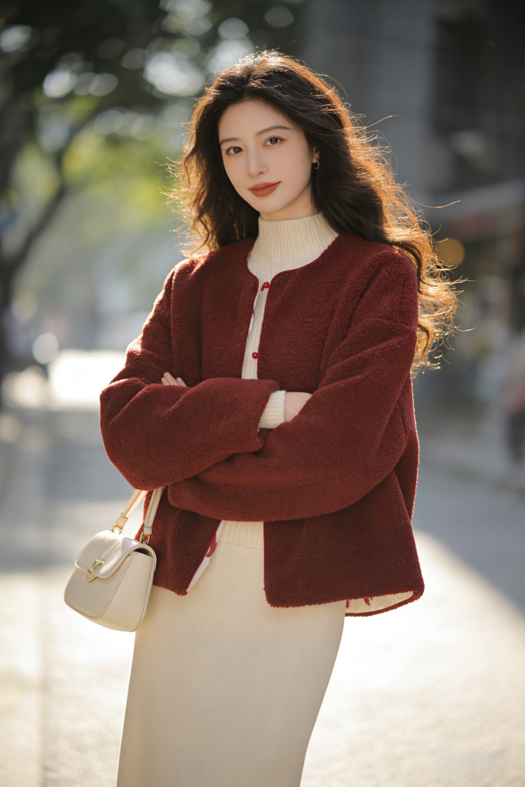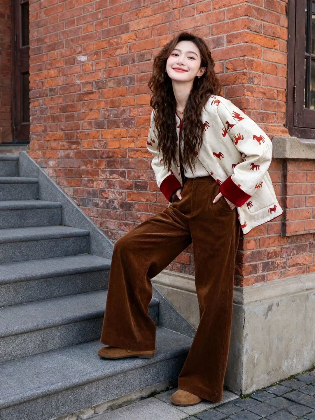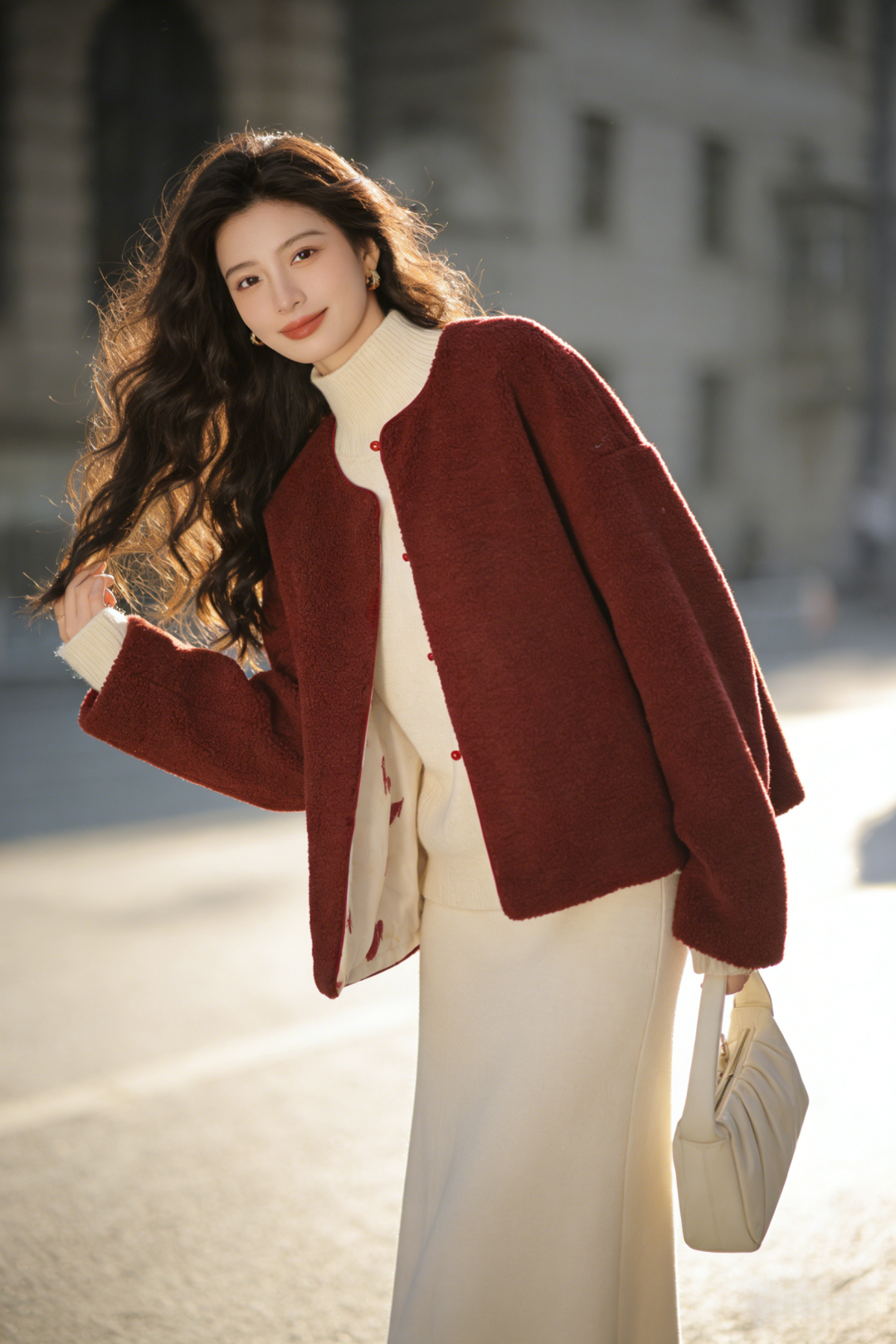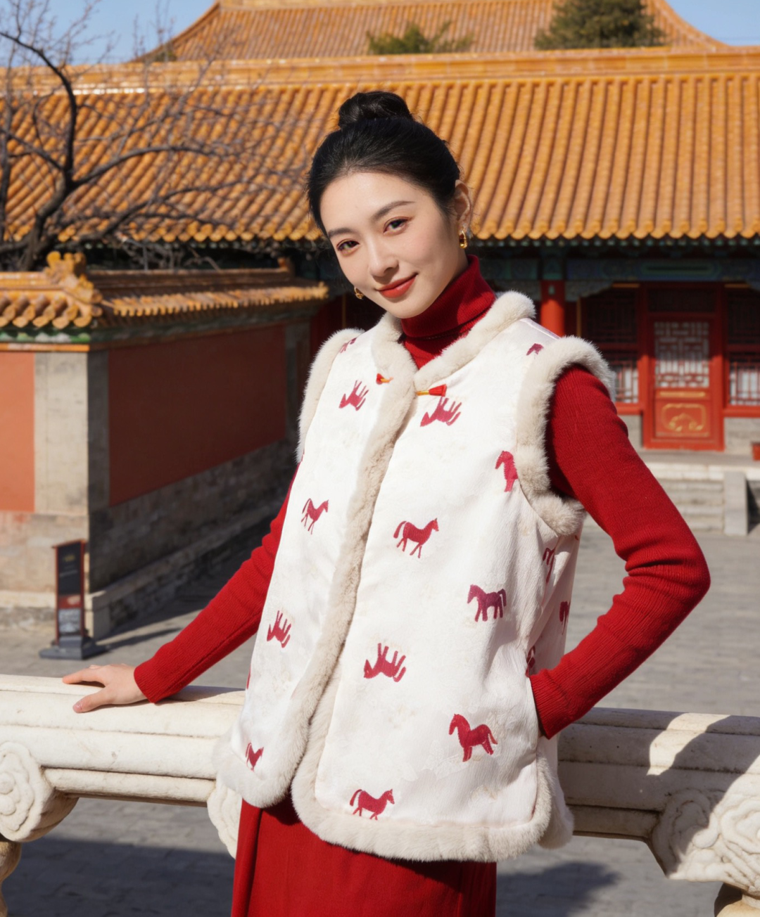 骐骥红小马,搭配中式留白,扑面而来东方高级感;骐骥红羊羔绒,柔绒暖意,红火热烈巨显白。