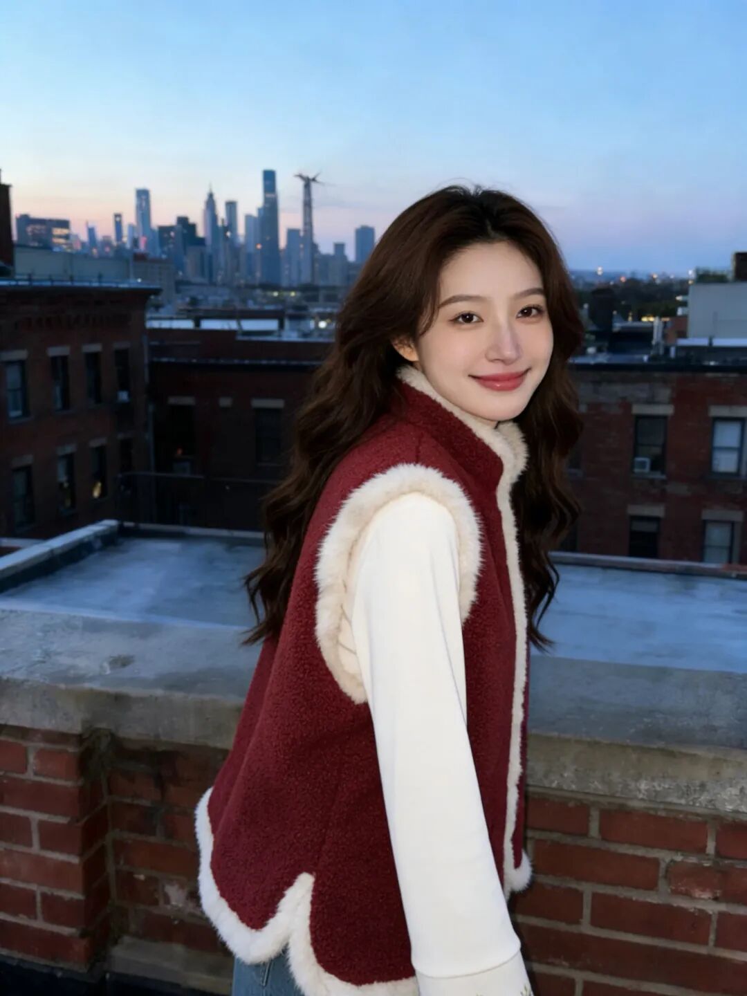 搭米白衬衫 + 黑长裙,是江南水乡的富家小姐;配条纹毛衣 + 牛仔裤,又变成松弛的韩系甜妹;连过年穿的红毛衣,套上它都能中和掉俗气,只剩恰到好处的喜庆。