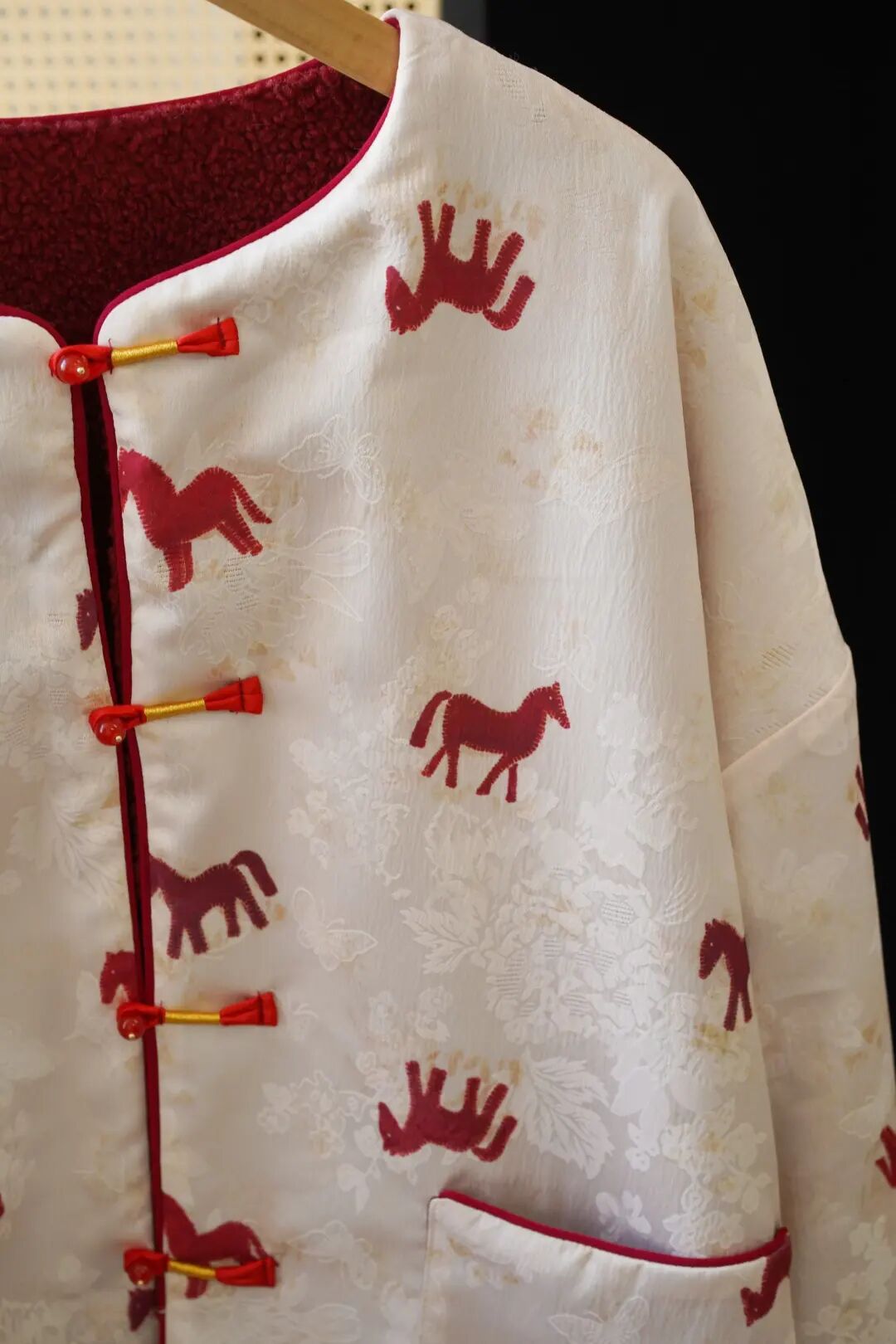 骐骥红中式盘扣,包裹小金线,更是把东方美学拉满了。