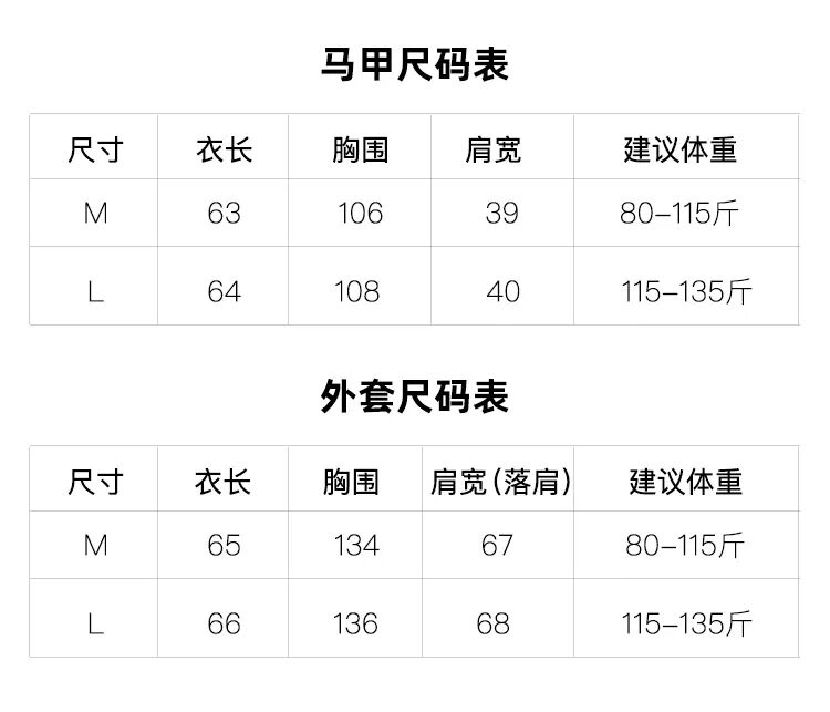 外套和马甲都有两个尺码可选,80-135斤的姐妹都能穿。