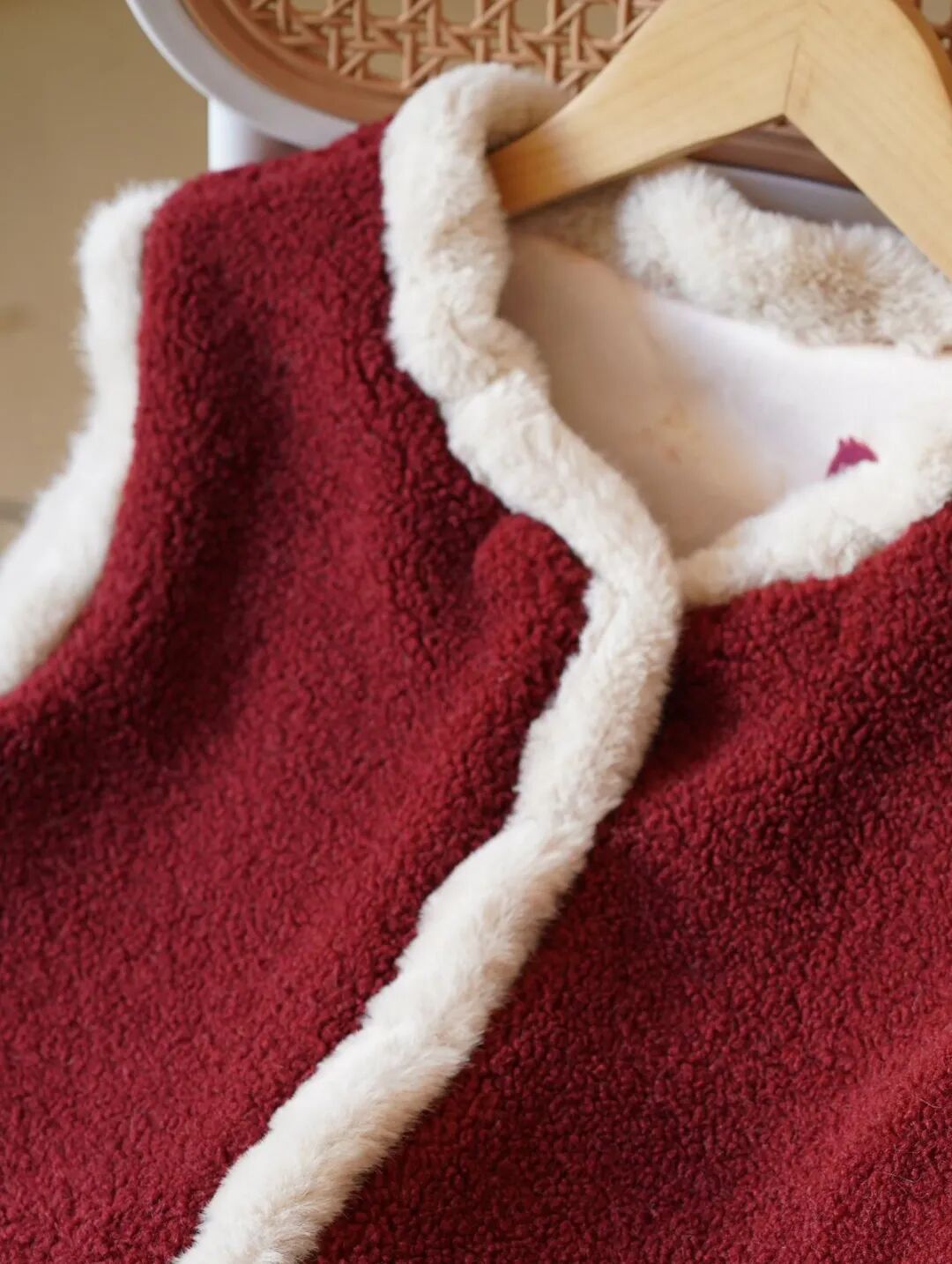 红色羊羔绒,还藏着懒人小心机:比浅色耐脏,日常穿不用小心翼翼打理。