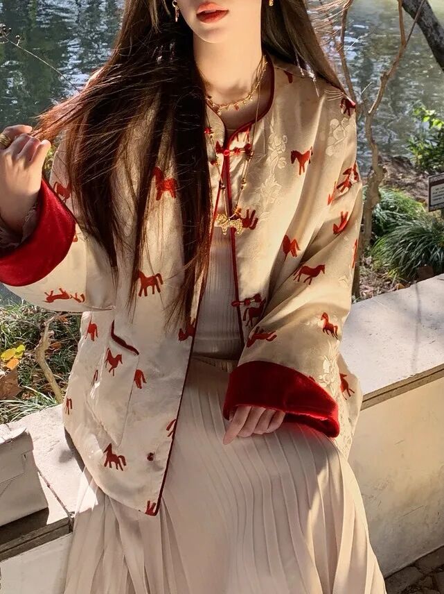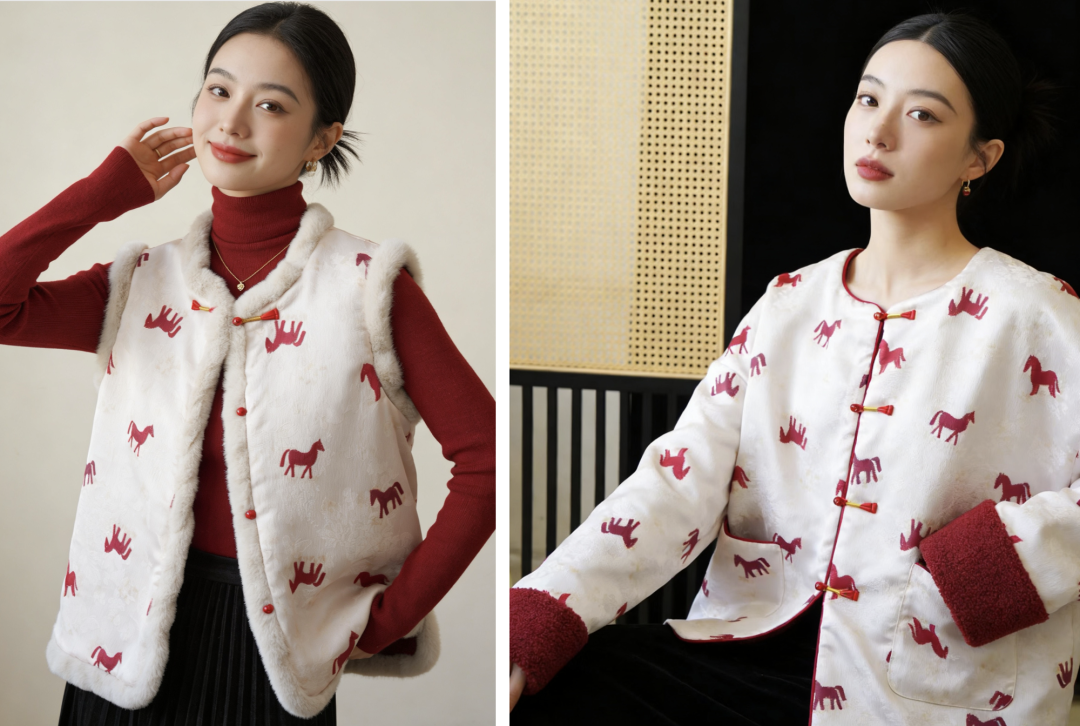 而借着骐骥红的风,一推出便爆火出圈的,是这款新中式双面穿小马外套/马甲。