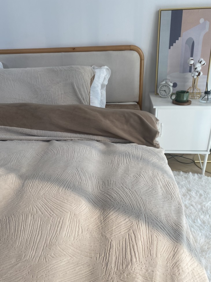 自带绒毛质感的牛奶绒床品,兼具纯棉的柔软舒适,而且接触皮肤升温快,晚上不用忍受冰冷的被褥,就能暖乎乎安睡整晚。