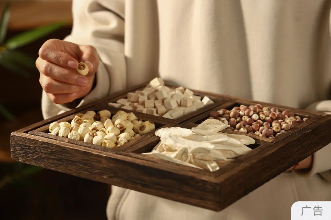 温县垆土山药,全国农产品地理标志,清香味淡,口感软糯;岳西茯苓,茯苓的核 心产地之一,自然微黄,无酸味苦味;建宁莲子,国 家地理标志产品,清淡莲香,粉糯易煮;将茯苓、芡实、莲子与淮山药,按1:1:1:1的比例,汇集在一起。四神汤里面这四位药食同源的食材性质都非常平和,不管你是湿热还是寒湿都能用。