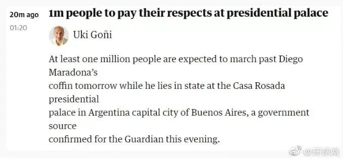 据阿根廷媒体消息,马拉多纳在家中突发心脏骤停,于当地时间11月25日13:02 因抢救无效去世,享年60岁。