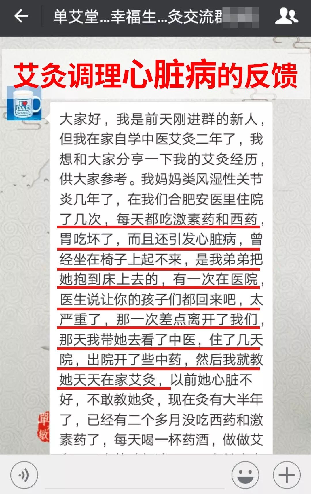 大多数人都认为心脏病在临床上是不可能被治愈的,然而这位灸友的妈妈通过艾灸调理,在与心脏病的斗争过程中取得了胜利,希望能够给大家一些启发。
