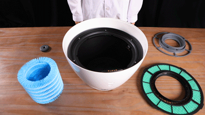 除了加湿功能,Rain也是空气净化器。毕竟自来水和纯净水,都不可能达到无菌状态。所以巴慕达又打造了三重净化装置,确保每一股空气的输出。