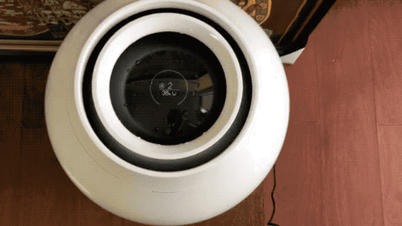 注意到没有,加湿器顶部的注水位,竟然是个液晶显示器。注水过程中,显示器会同步显示注水量多少。