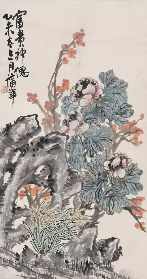 草绿中微加墨或微加点胭脂,常用来罩染处于暗部的叶子色彩,薄薄的老绿也可用来渲染反叶。