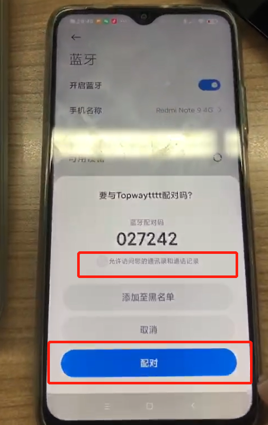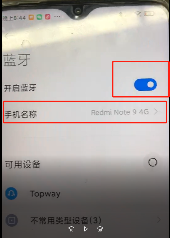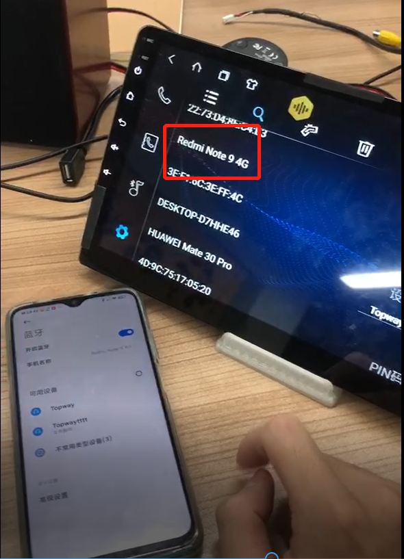 手机打开蓝牙开关,并记住我们的设备是 Note9 待会在车机方便找