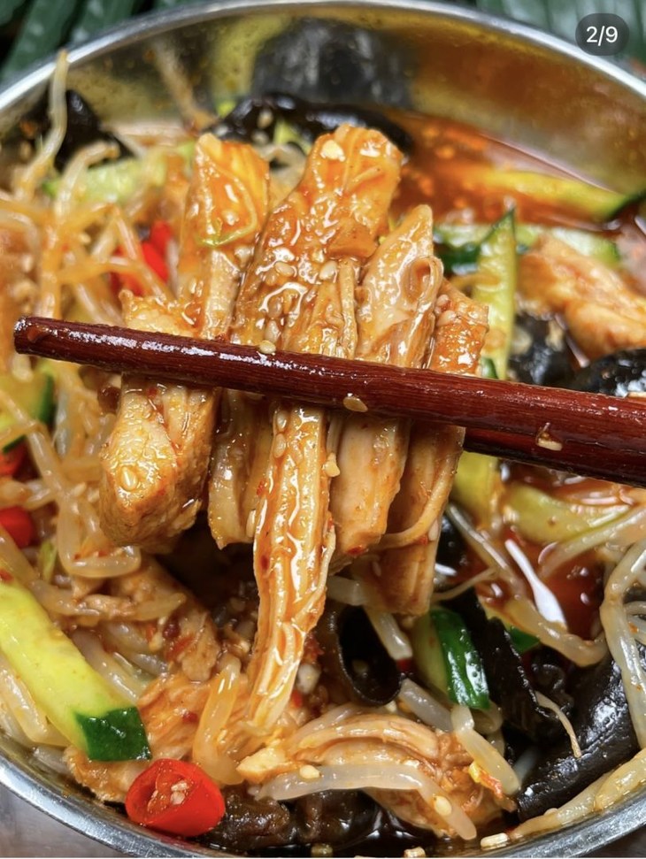 鸡排、木耳、蒜、辣椒、豆芽、黄瓜(蔬菜可按喜好进行调整