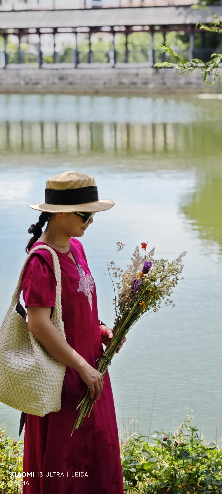 姐姐身着轻盈飘逸的玫红色连衣裙