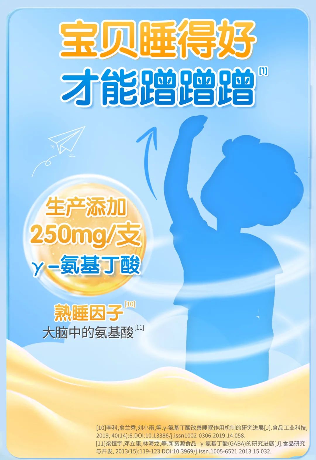 特别添加 γ-氨基丁酸+酸枣仁,提高儿童睡眠质量,促进生长素分泌。