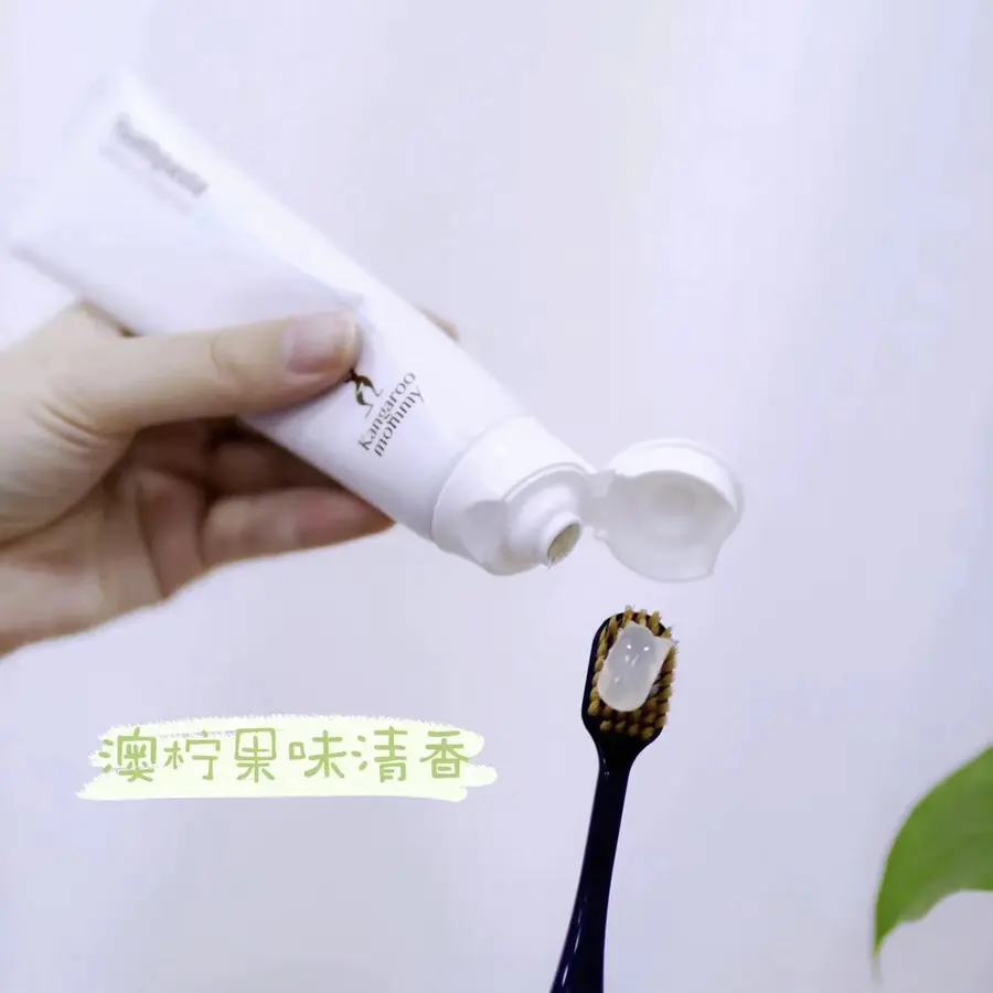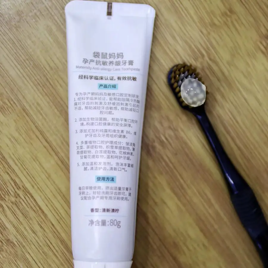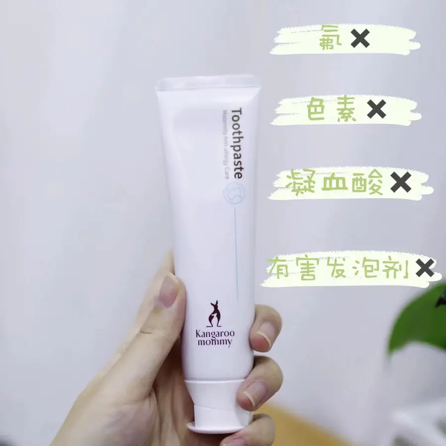 孕妇用的东西还是得重视,我就买了袋鼠妈妈牙膏,这是专门给孕期敏感牙齿用的。牙膏是透明的,味道也好闻。