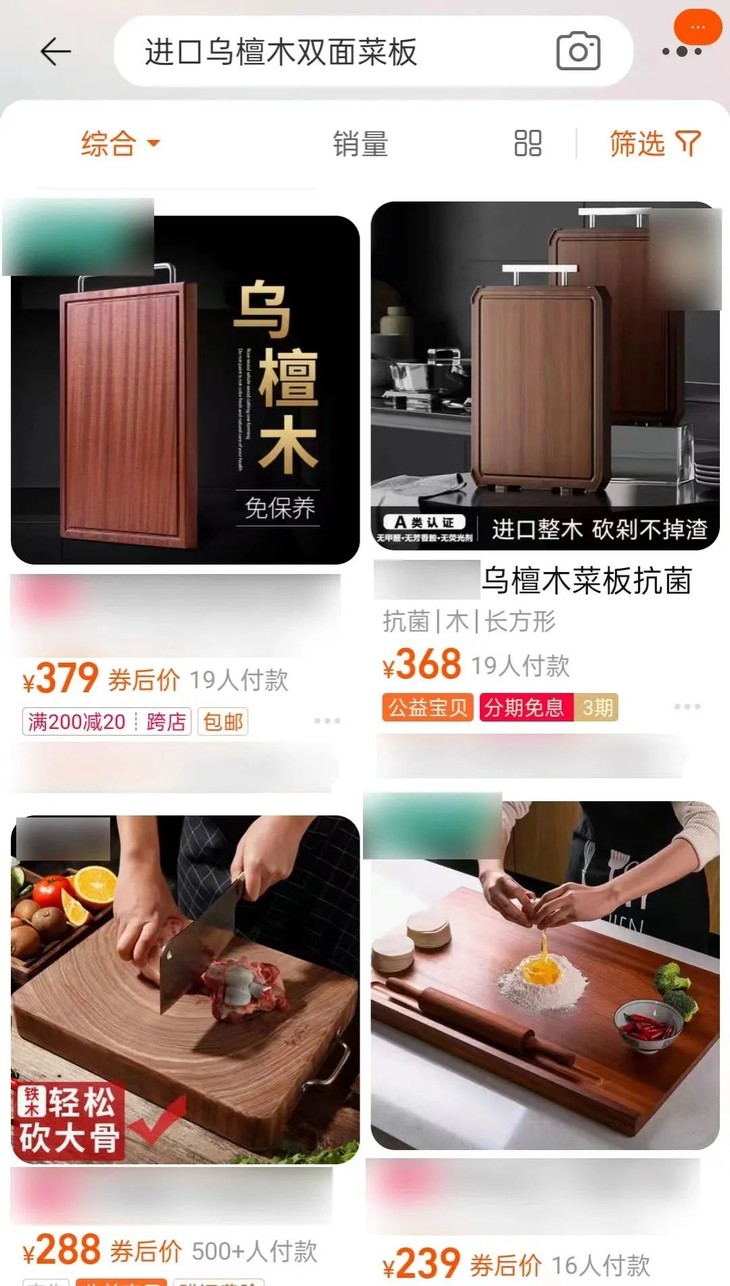 且不说双面菜板,市面上随便一款进口乌檀木双面菜板就要大几百,甚至更贵!