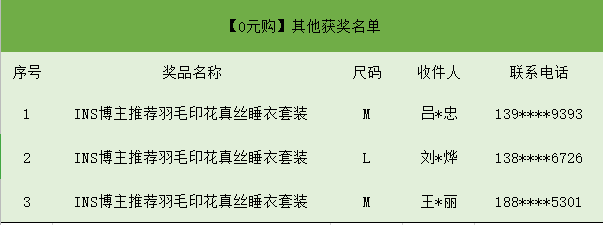 其他三位我们已经收到获奖的地址和尺码信息了,已经统计完成,将在今天安排发货哈。