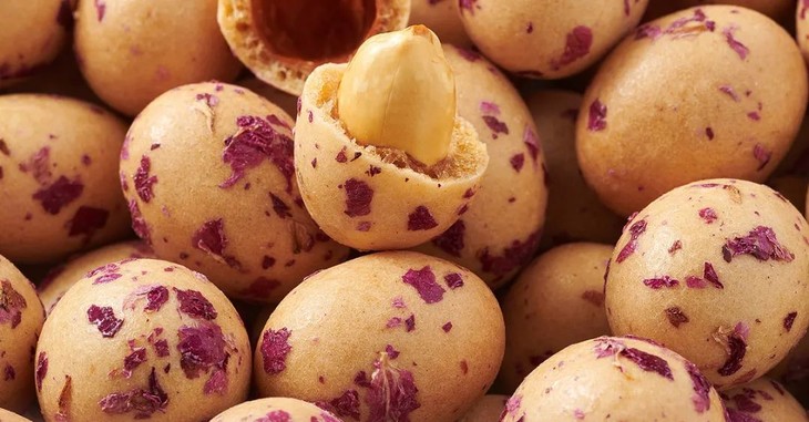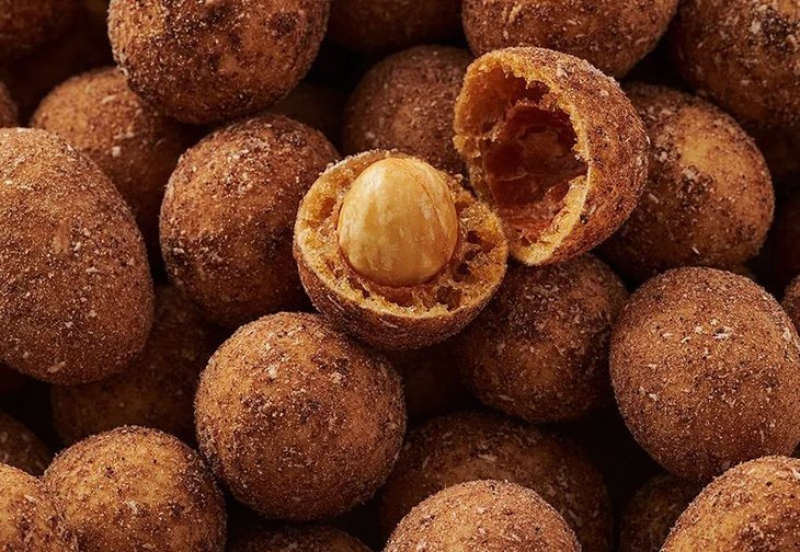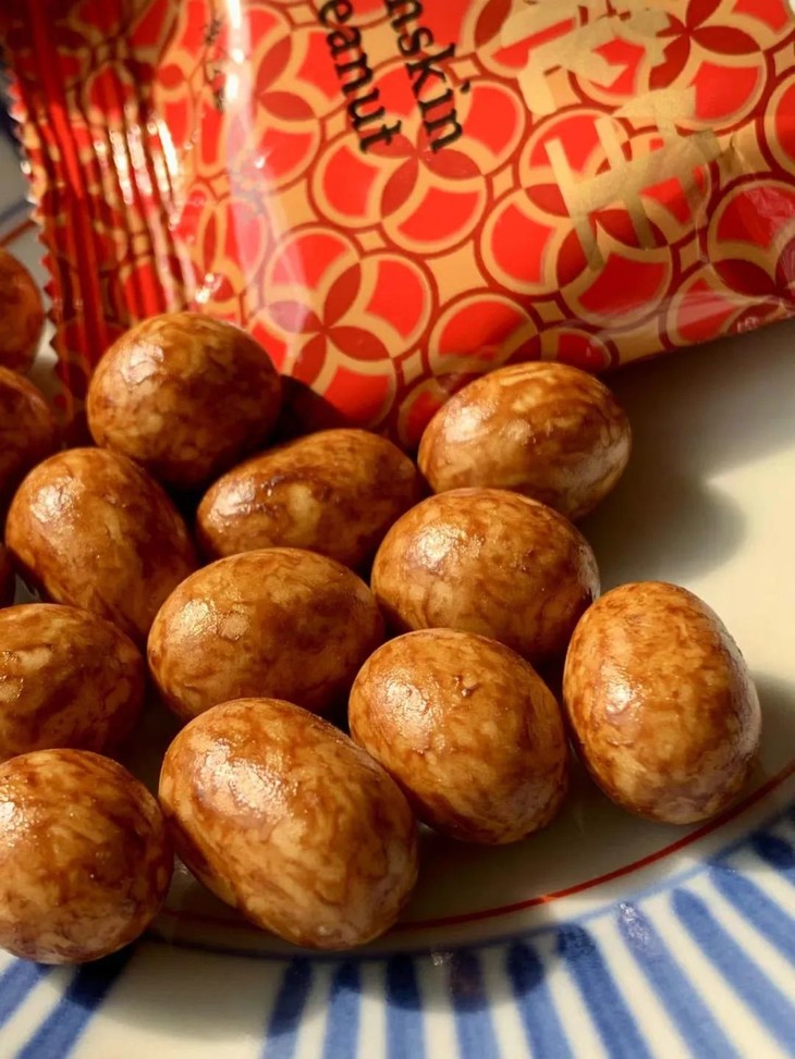 这是一款可以看得到椰丝的鱼皮花生。光看这个图都已经感觉在嚼着吃焦糖拿铁咖啡了。